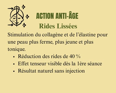Raffermissement (En profondeur) : Stimulation intense des fibroblastes pour un effet tenseur.